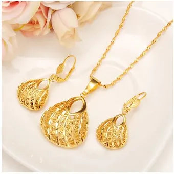 Introducing the exquisite 2-Piece Goldtone Momase Bilum Bag Purse Pendant Necklaces Earrings gold jewelry sets, exclusively at Africangemz. Perfectly crafted to complement traditional African attire for weddings and baby-naming ceremonies, this set encapsulates elegance and cultural sophistication. Each piece gleams with a luxurious gold-tone finish, adding a touch of regal charm to any ensemble. Embrace the beauty of unique, global-inspired designs with our Bilum bag set that promises to make you stand out on your special occasions. Shop now at Africangemz for unparalleled luxury and timeless beauty.