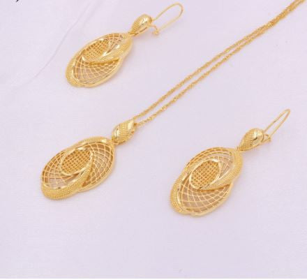 Indulge in the opulence of Fatoumata from Africangemz. This exquisite necklace set features stainless steel with a rich goldtone finish, perfect for gifting or wedding adornment. Make a statement of refined luxury with this one-of-a-kind piece.