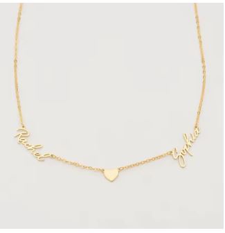Discover the perfect way to showcase your love with In My Heart Gemz! This stunning stainless steel necklace features two personalized names and a heart in the center, all adjustable to your desired length. Make a statement and show your loved one how much they mean to you. made to order takes 7-10 business days