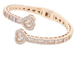 This CZ open heart-shaped adjustable bangle adds a touch of elegance and sparkle to any outfit. Featuring a unique and modern geometric design, this bangle is adjustable to fit any wrist size. Perfect for adding a touch of glamour to your everyday look! 58mm or 62mm